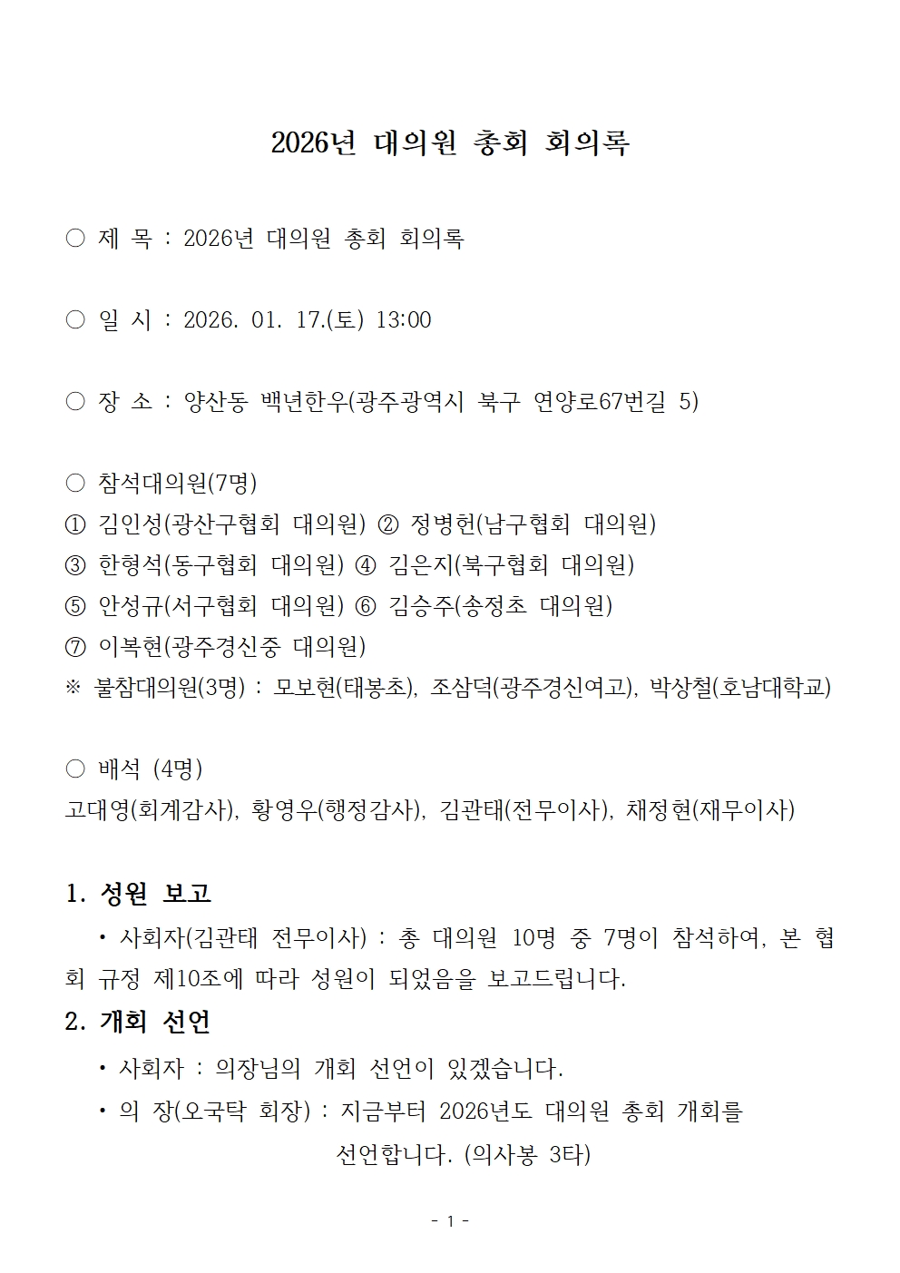 2026년 정기대의원총회 결과('26.01.17)
