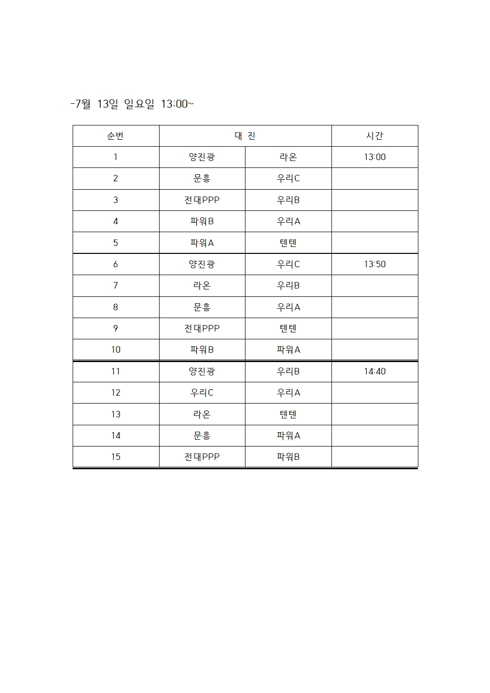 예선전리그전표